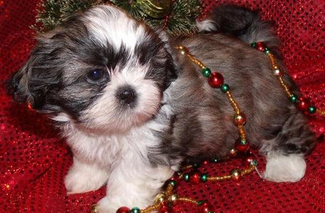 Parti- colored Shih Tzu are the most popular. White blaze, crown, beard, feet and white tip on tail are all classic marking and are desirable providing it's owner with good luck all year long. The reason is because they are the keeper of balence in thier family.. We produce all colors and maintain the qualities that A.K.C. has set. We only breed the best of the best, so you get great temperament, healthy and all colors.